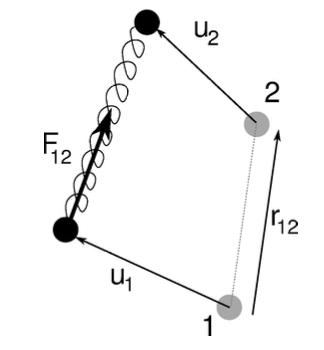 In the harmonic approximation, we noted that the forces acting on the atoms depend linearly on their relative position from the equilibrium state, so the interaction of the atoms can be modeled like they are connected with springs. In this case every atom would be connected to every other atom, but in this model we simplify this case by only considering the strongest ones of the springs (first and second neighbors).